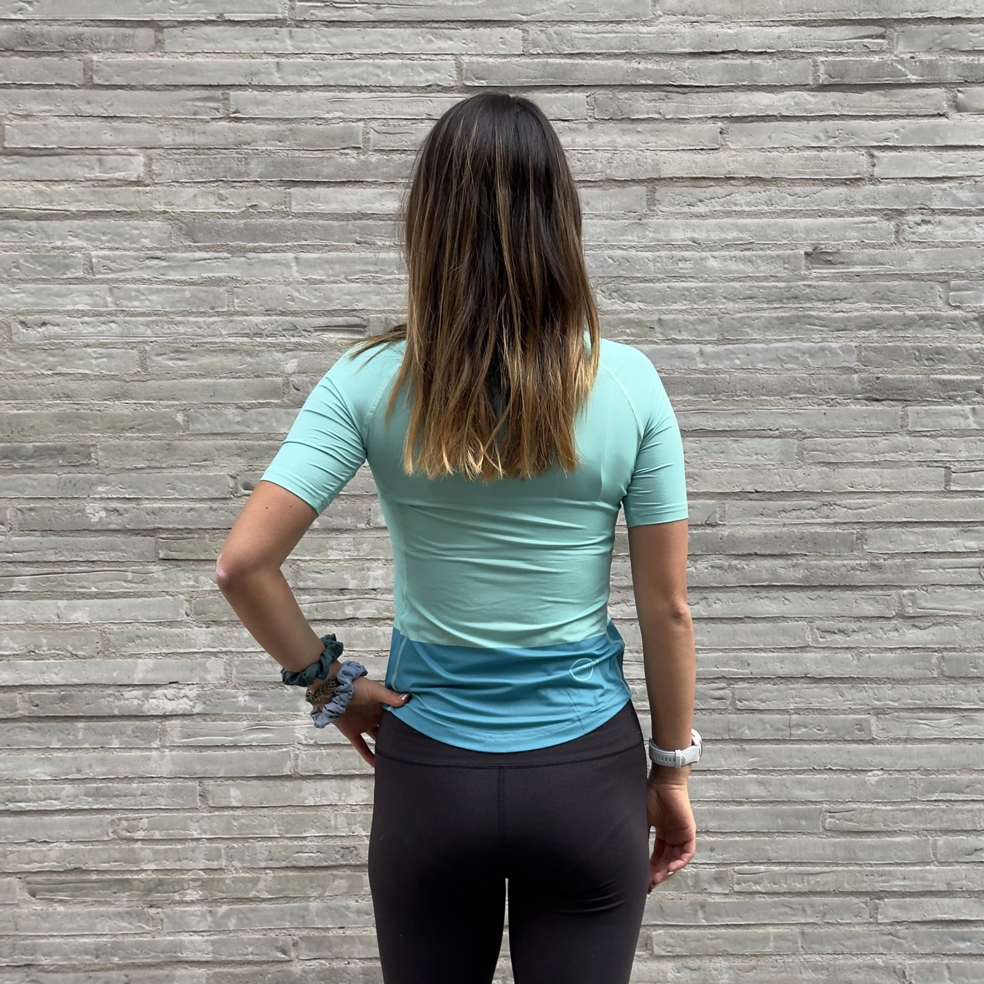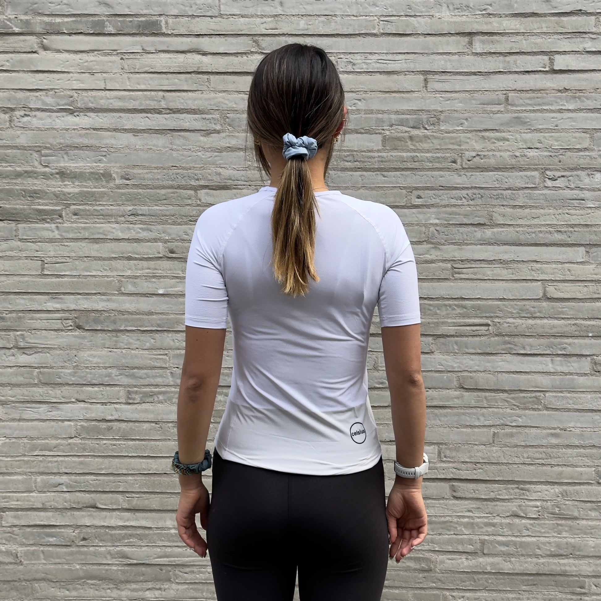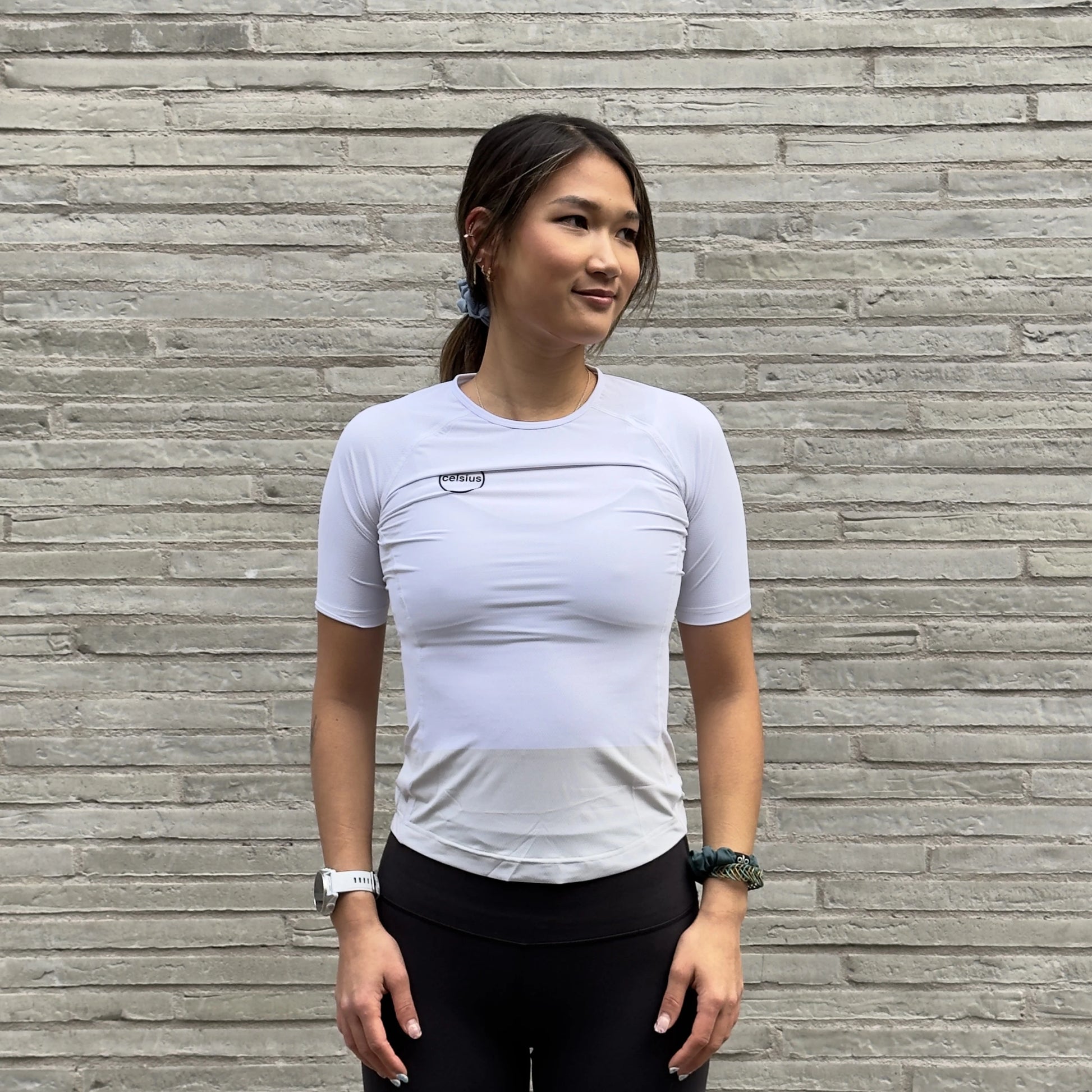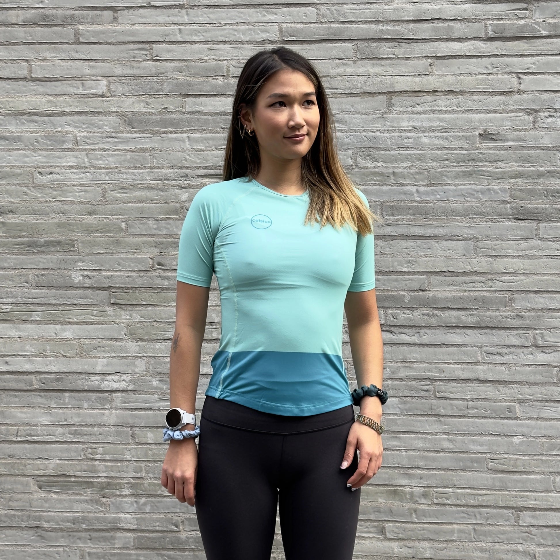 Lightweight running t-shirt made from recycled moisture wicking and antimicrobial fabric.