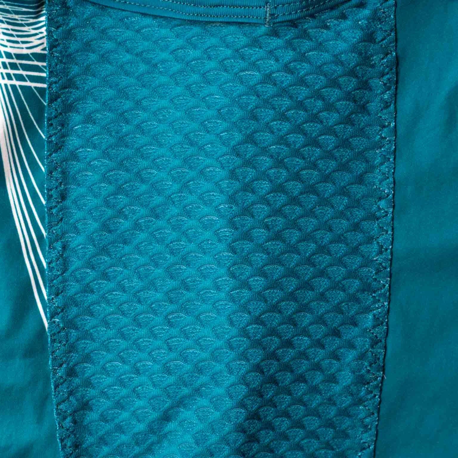 Our fabrics are Bluesign certified. This specification assesses resource productivity, consumer safety, water use, air emissions, and health and safety at work for environmental impact. This overall assessment, if passed, is a guarantee of a production with low environmental impact. We also reduce our air and water pollution and conserve natural resources by making sure our synthetic fabrics, primarily polyester and elastane, are recycled and our natural fabrics, primarily cotton, are organic.